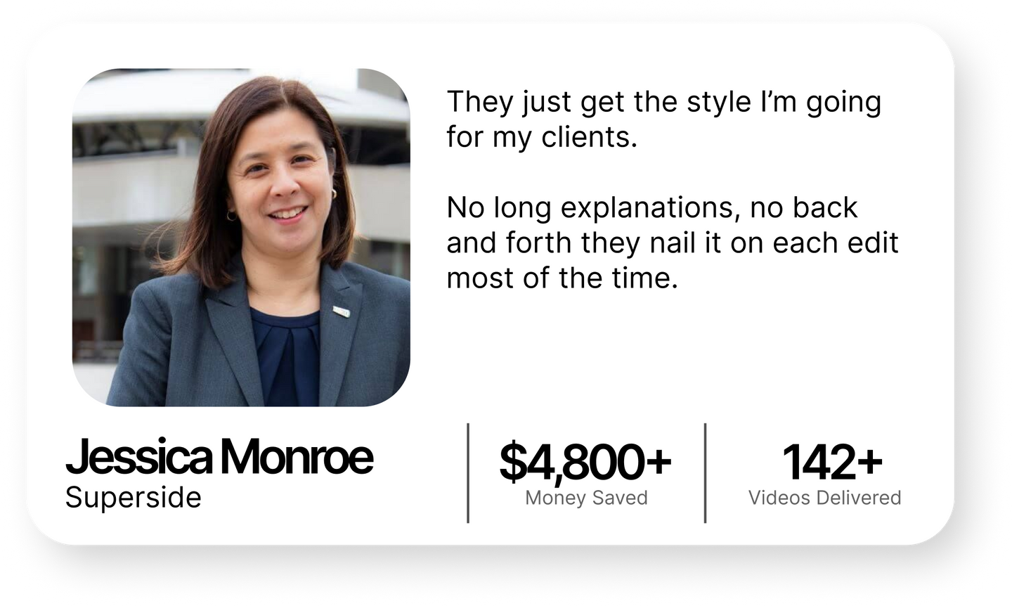 On-Demand Edits means you get content whenever you need it and pay for only what you ordered—without hiring, managing, or having contracts.